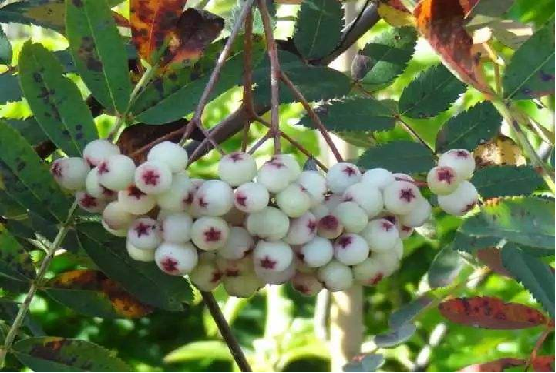 陕甘花楸 Sorbus cuspidata (Spach) Hedl 所属科目:蔷薇科 形态特征: 枝条粗壮,叶片椭圆形,复伞房花序具多数花朵,白色,果实圆球形。 产地生境:生长于海拔2000-3500米的林内。