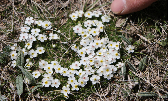 垫状点地梅 Androsace tapete 所属科目:报春花科 形态特征:株形为半球形的坚实垫状体,直径2-3毫米。 产地生境:生于砾石山坡、河谷阶地和平缓的山顶,海拔3500-5000米。