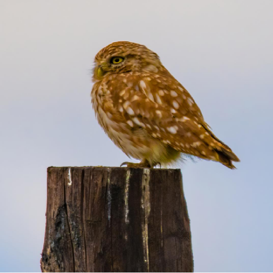 所属科目:鸱鸮科 形态特征:体小(23厘米),无耳羽簇。眼亮黄而长凝不动。浅色平眉及白色宽髭纹使其形狰狞。上体褐色,具白纵纹及点斑。 保护现状:国家Ⅱ级重点保护动物。 栖息环境:栖息于低山丘陵,林缘灌丛和平原森林地带,也出现在农田、荒漠和村庄附近的丛林中。