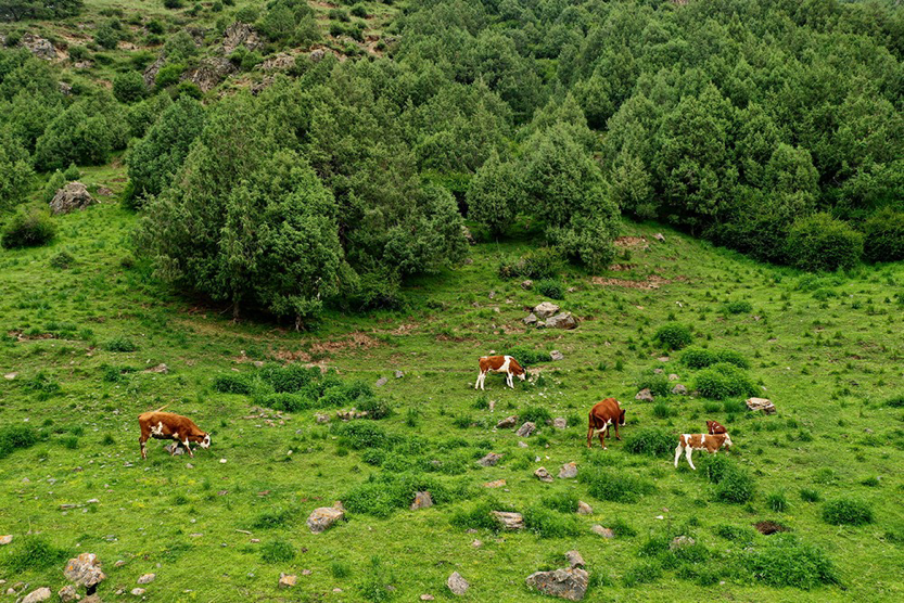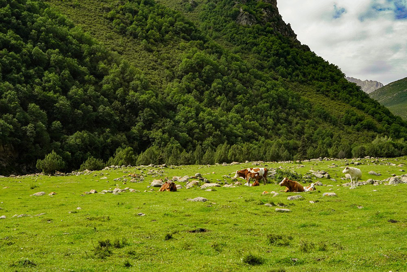沿着游览步道,伴着袭人绿凉,眼观千姿百态古树,耳听千变万化虫鸟鸣,才可以真切体会到大自然的神秘与伟大。青松翠柏,果树连片,山花烂漫。植物种类繁多,生长着各类名贵药材。野生动物资源也十分丰富,有雪豹、白唇鹿、马麝、岩羊、金雕、蓝马鸡等野生动物,动植物的遍布,给景区增添了许多的野趣和勃勃生机。森林中负氧离子是城市的近百倍,亦被誉为“林海氧吧”。行走在这儿,恍若步入童话故事里的绿野仙踪,树影婆娑,娉婷婀娜,流转着一片光影对森林温柔低诉的倩影。